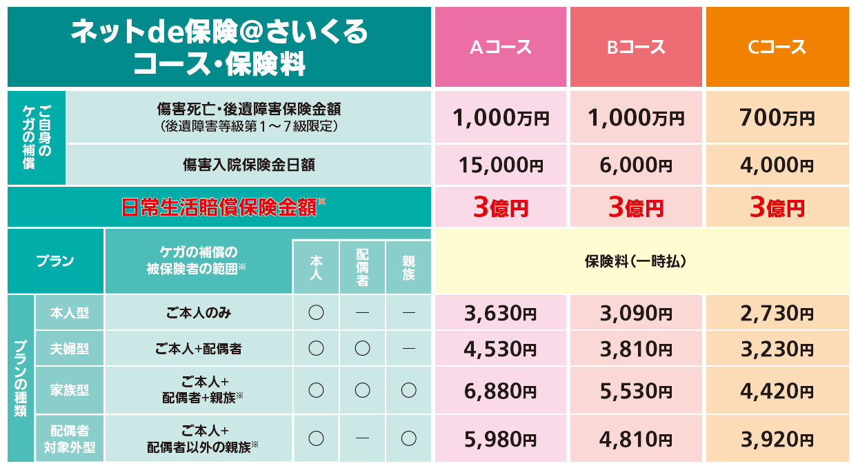 ※被保険者の範囲の詳細は「ネットde保険@さいくる」ご契約手続画面でご確認ください。